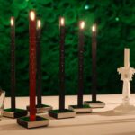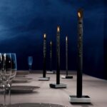 Like a robotic candle from the future. the slender My New Flame Lamp is topped with 256 LED lights that create a realistic flame-like flicker. The body of the lamp is composed of exposed circuit board and sits atop a gleaming chrome steel base. An object in MoMA’s collection. the My New Flame Lamp is powered with four AA rechargeable batteries (not included) and is turned on or off via a switch in the base. A USB cable is included for the recharge. In the middle section of the plate there is a small button switch for dimming. The lamp measures 15.75h x 3.5w x 3.5d with a 60l cord.