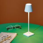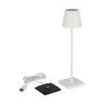 Small. chic and endlessly portable. the Poldina is a rechargeable design with a colorfully painted aluminum body. It provides mood light wherever you need it with a polycarbonate diffuser and LED light source. The Poldina is switched on and off with a touch button on top of the diffuser. The button can also be used as a dimmer and also to adjust the light’s color temperature from warm to cool. Its IP65 protection allows you to use it outdoors as well as indoors. The Poldina Micro Portable Lamp charges via the included contact charging base which can be used with a USB outlet or standard outlet (adaptor not included) and provides up to eight hours of light per charge. It measures 10.8h x 2.8diam.